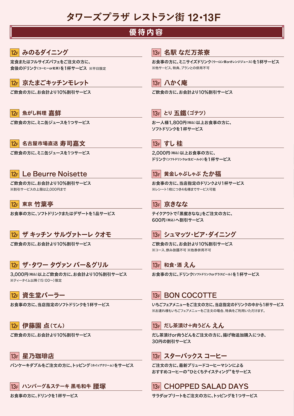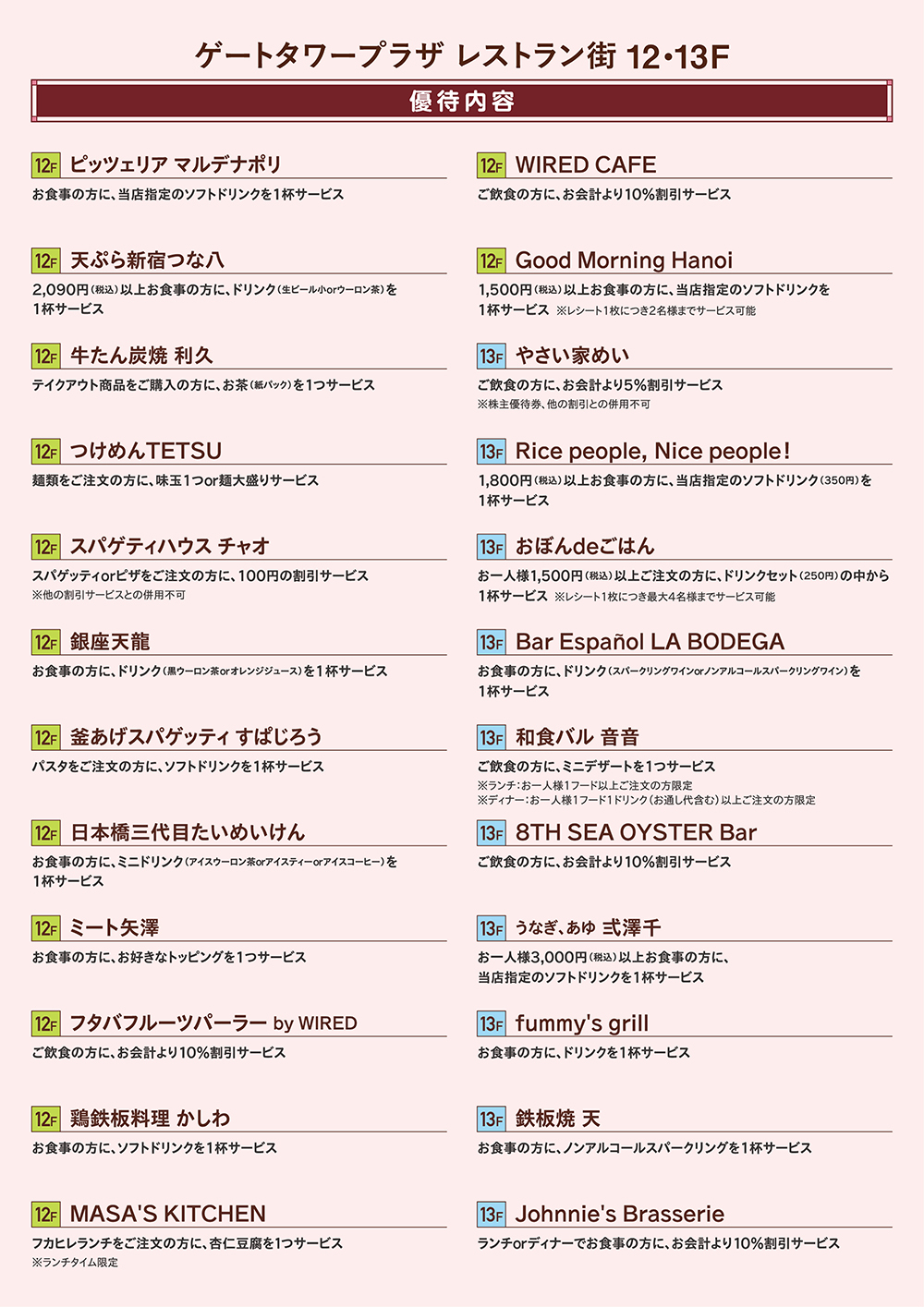 タワーズプラザ・ゲートタワープラザレストラン街 12・13F