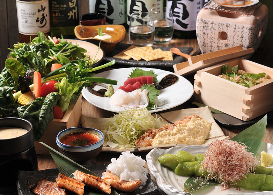金沢の郷土料理「治部煮」をはじめ、能登の里山里海で育まれた食材と、加賀の伝統野菜をお楽しみいただけます。石川から取り寄せた10種を越える地酒もご用意しております。